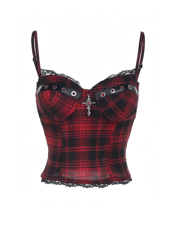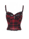 Top croce punk in pelle e pizzo quadri rosso anni '70 – Retro-Stage.it