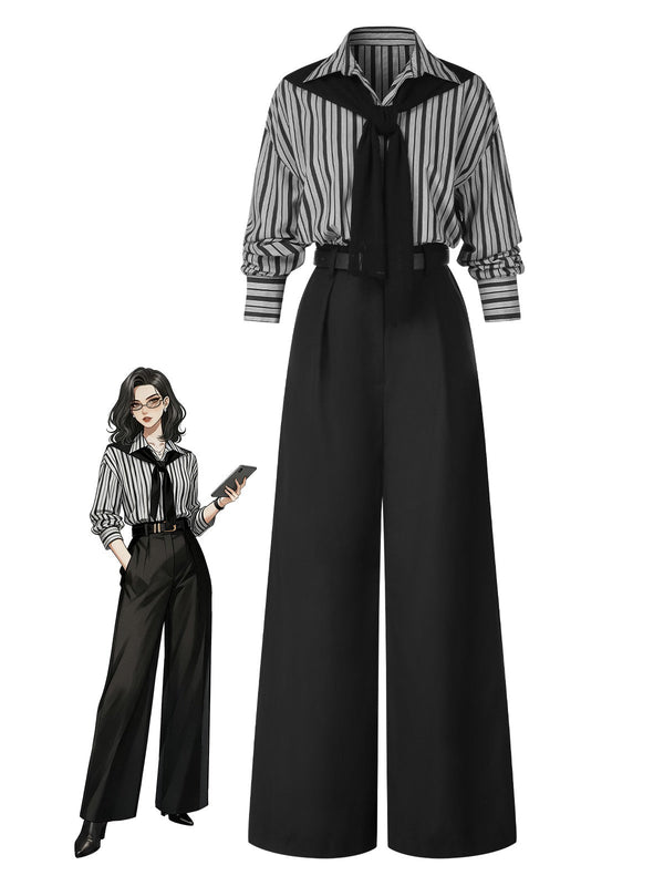 [Prevendita] Tuta lunga a righe patchwork e mantello nero anni '40