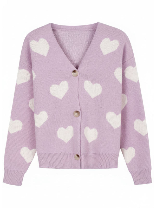 Cardigan in maglia con stampa a cuore per San Valentino anni '50
