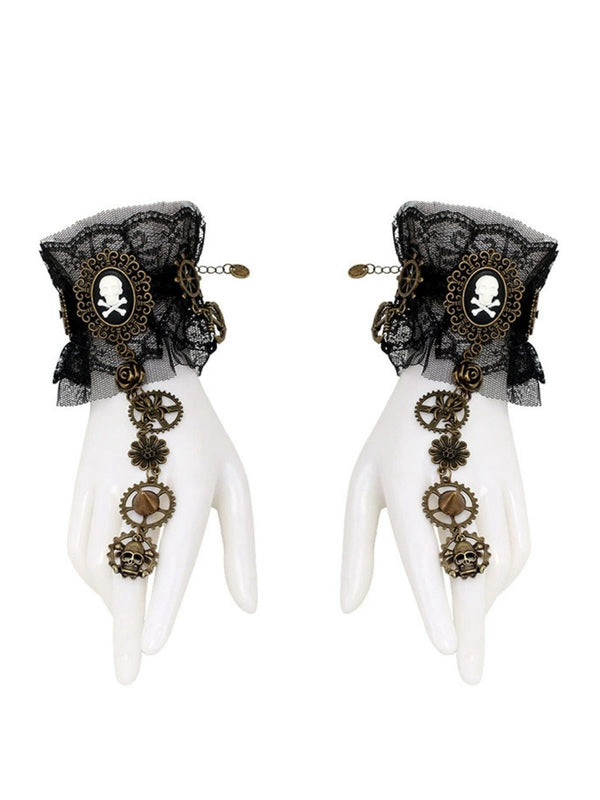 Braccialetto punk gotico in pizzo nero con anello – Retro-Stage.it