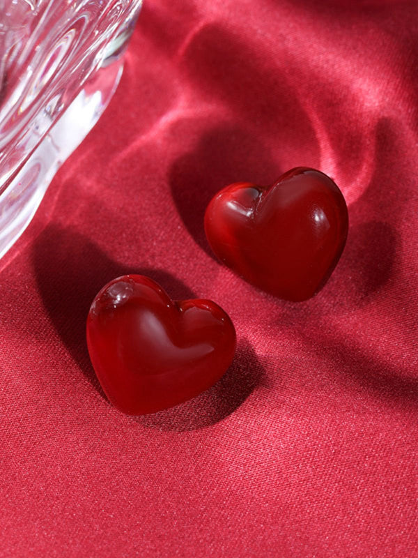 Orecchini a bottone a forma di cuore rosso San Valentino