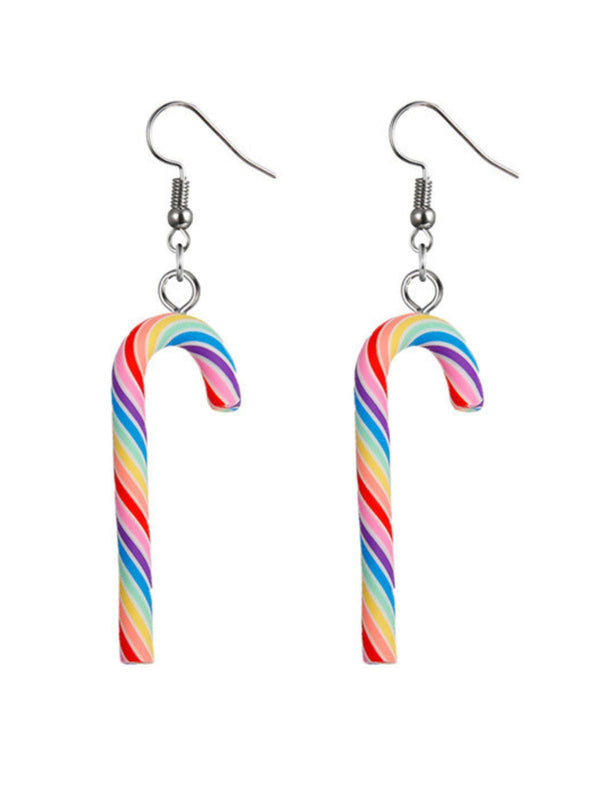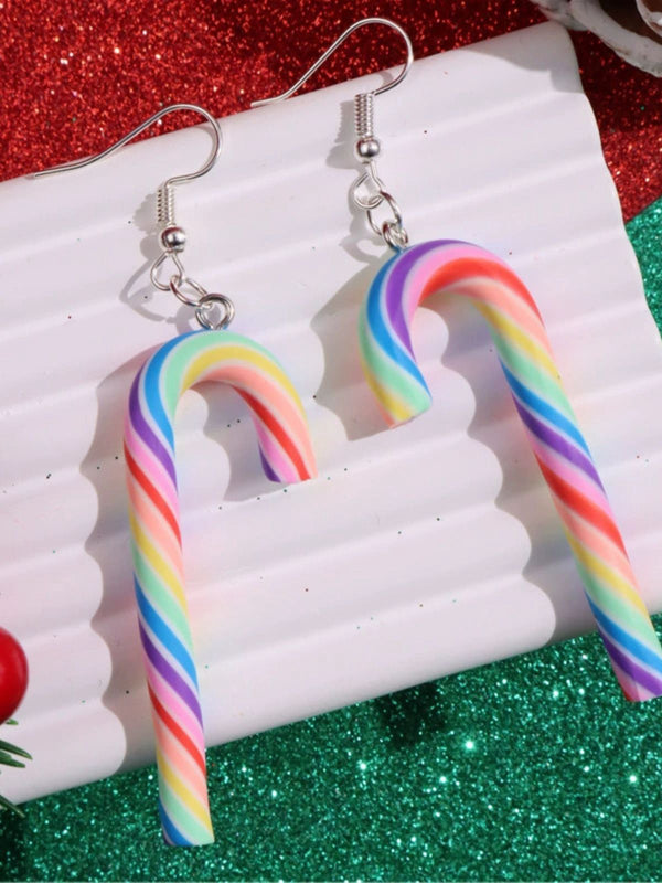 Orecchini con bastoncino di zucchero arcobaleno natalizio