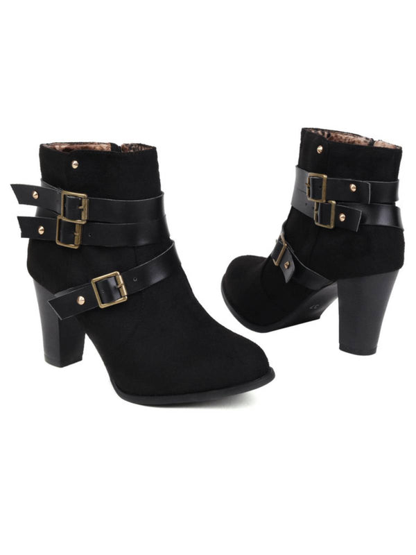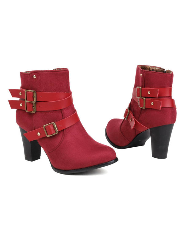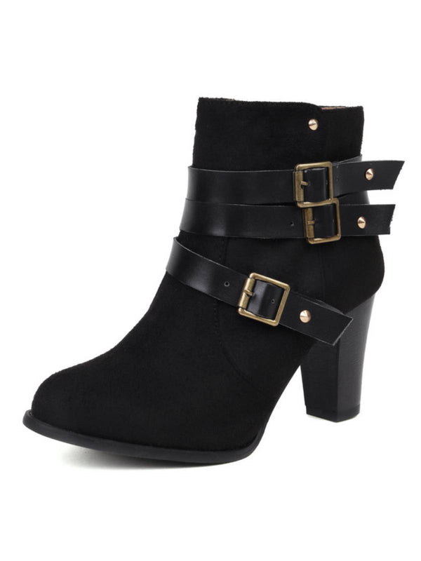 Scarpe con tacco alto in pelle scamosciata con cintura retrò