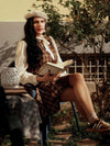 Abito a quadri con bottoni e fiocco marrone anni '60