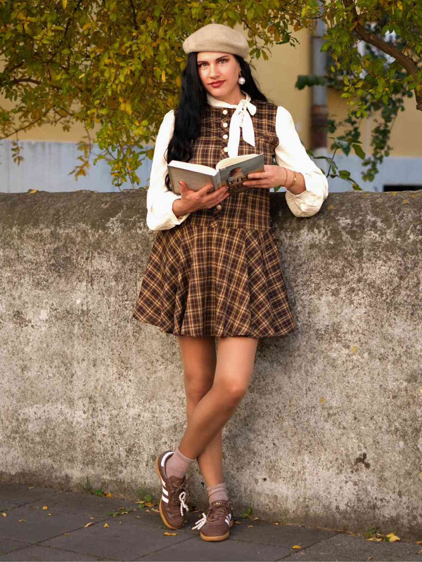Abito a quadri con bottoni e fiocco marrone anni '60 – Retro-Stage.it