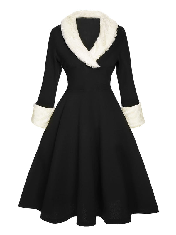 Abito con collo di pelliccia natalizio nero anni '50 – Retro-Stage.it