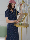 Abito floreale maniche a sbuffo puro cotone blu anni '40