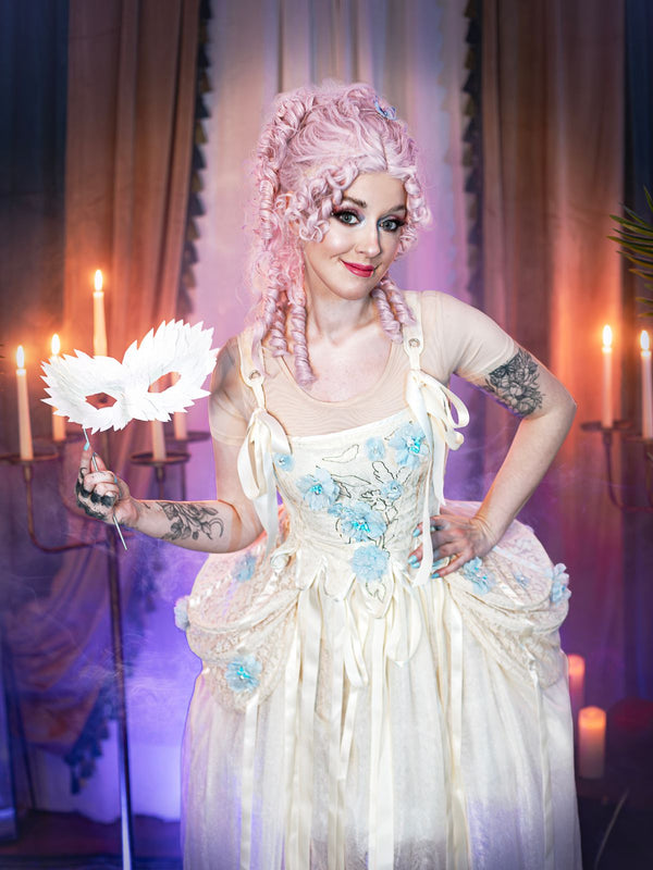 Abito in stile Mercoledì Enid albicocca anni '40 – Retro-Stage.it