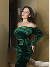 Abito in velluto a spalle scoperte verde scuro anni '60 – Retro-Stage.it