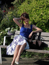 Abito scollo a cuore e bottoni floreali blu anni '50