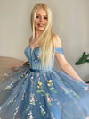 Mini abito in pizzo floreale ricamato azzurro chiaro anni '70