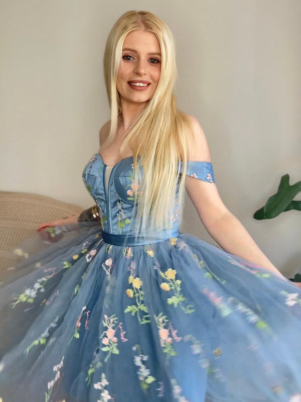 Mini abito in pizzo floreale ricamato azzurro chiaro anni '70 – Retro-Stage.it