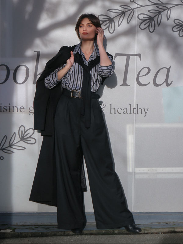 Tuta lunga a righe patchwork e mantello nero anni '40 – Retro-Stage.it