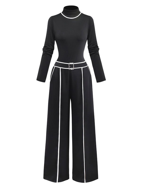 2PCS Top a maglia con collo alto e pantaloni a gamba larga nero anni ' – Retro-Stage.it