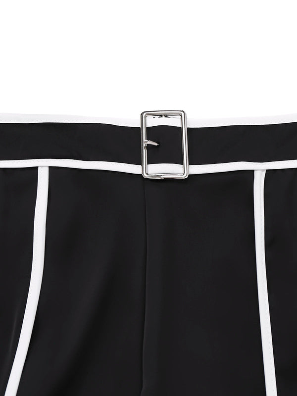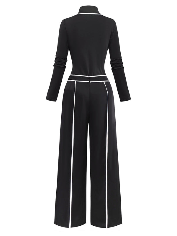 2PCS Top a maglia con collo alto e pantaloni a gamba larga nero anni '30