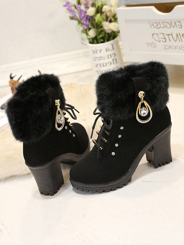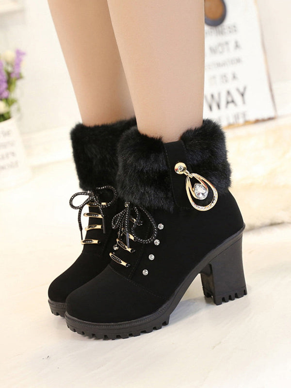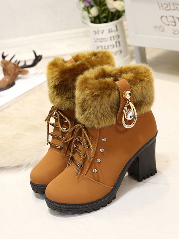 Stivali vintage in pelle nabuk con tacco spesso e peluche