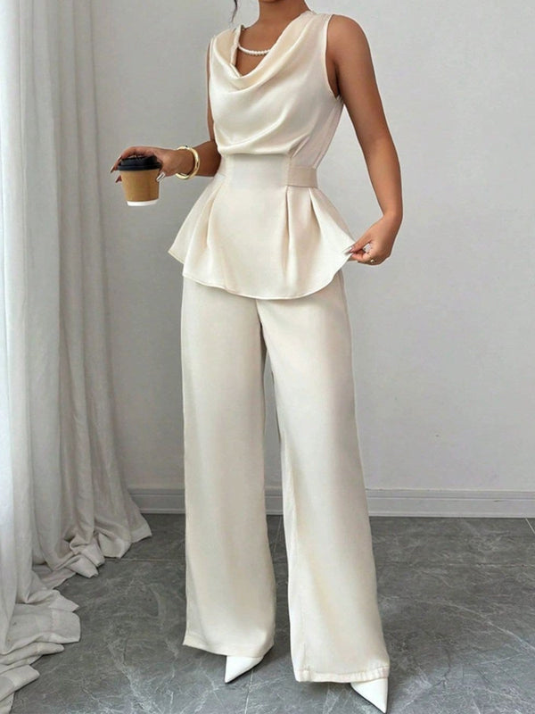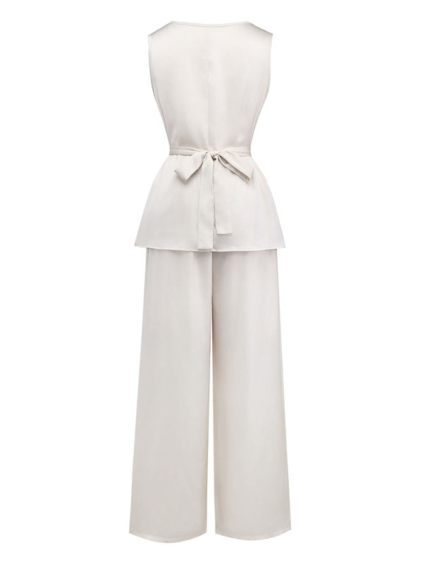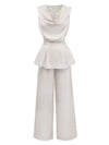 2PCS Top con scollo a cappuccio e pantaloni beige anni '50