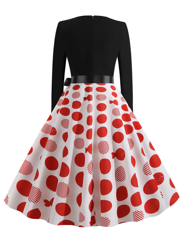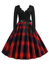 Abito a ruota a quadri con scollo a petal e maniche lunghe anni '50