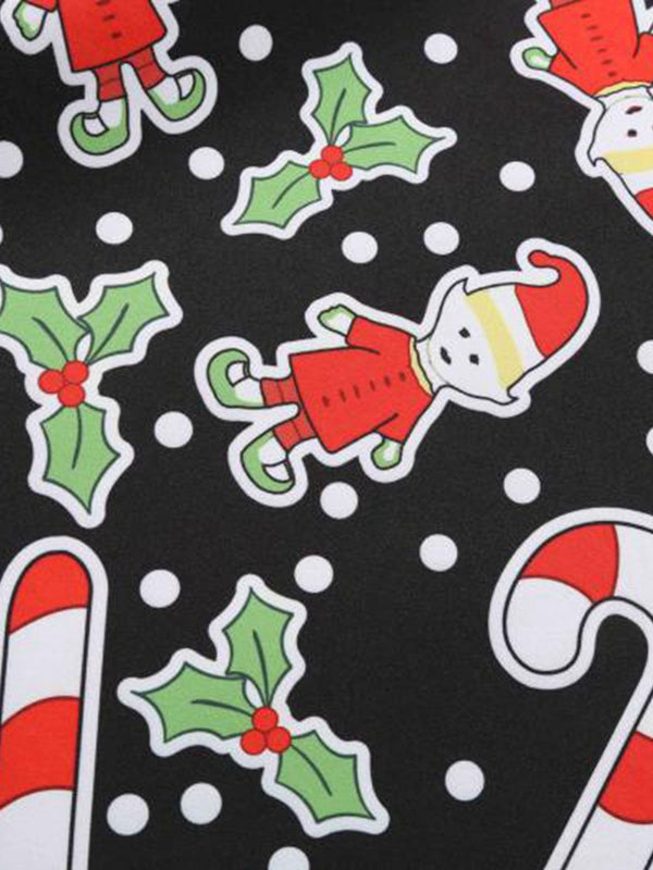 Abito a ruota con bastoncini di zucchero natalizi anni '50