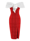 Abito a tubino con fiocco in peluche e mantello rosso anni '60