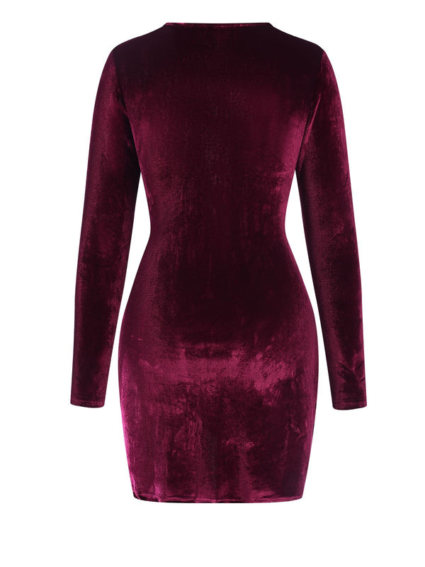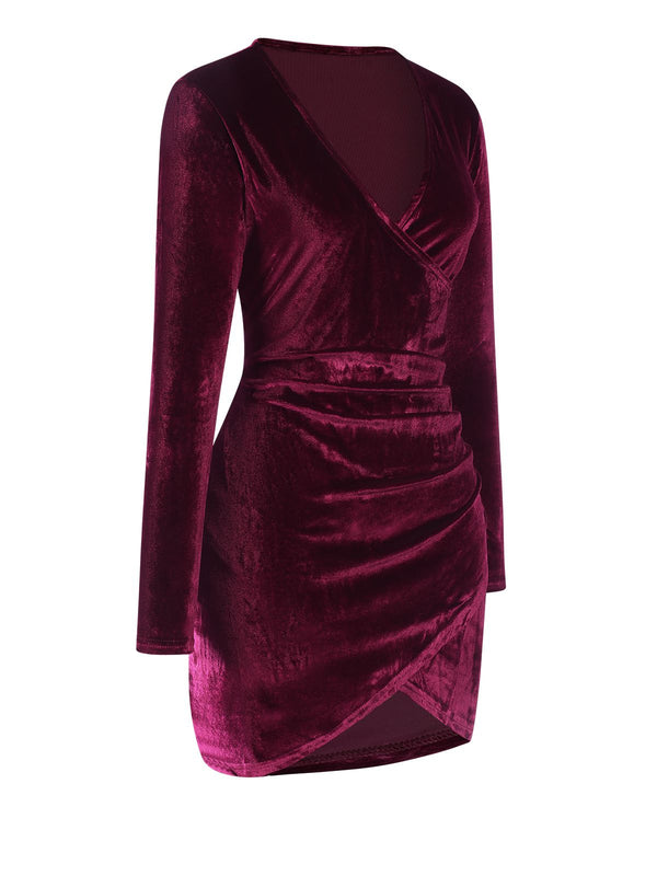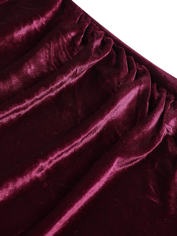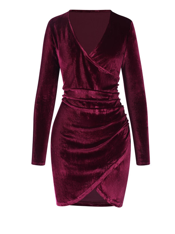 Abito avvolgente in velluto con scollo a V bordeaux anni '60