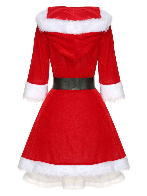 Abito con cappuccio e cintura natalizio rosso anni '50