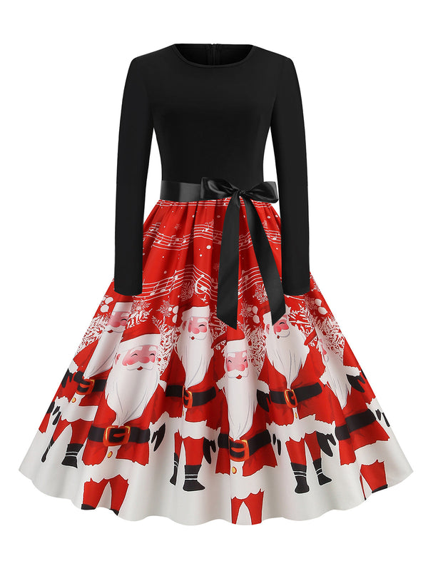 Abito con cintura e stampa natalizia nero anni '50 – Retro-Stage.it
