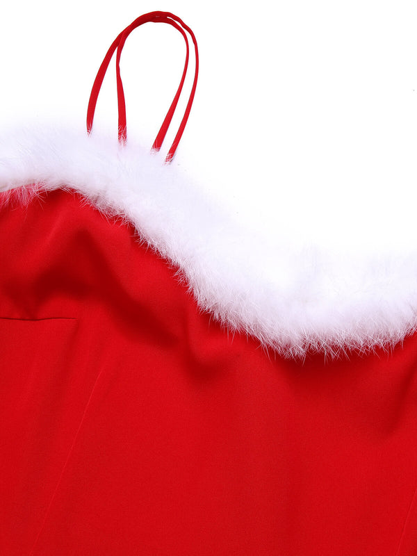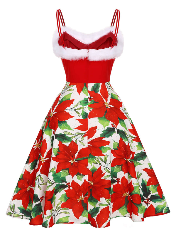 Abito con rifiniture a poinsettia natalizia rosso anni '50