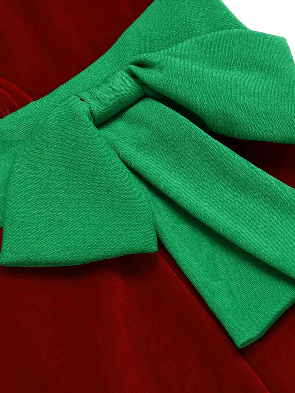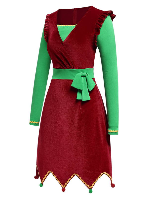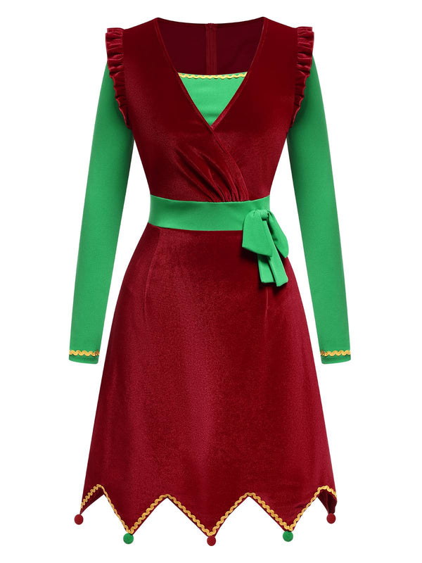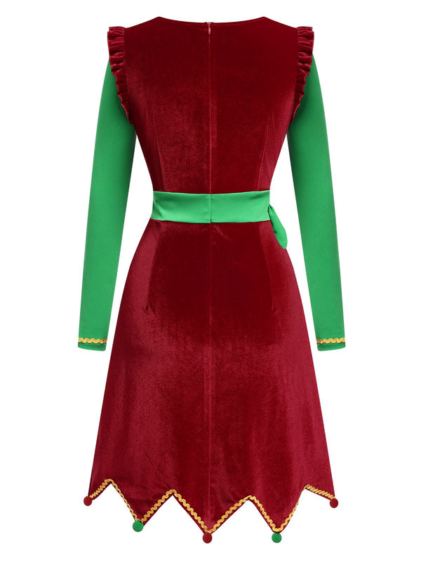 Abito contrasto con orlo ondulato natalizio rosso anni '60