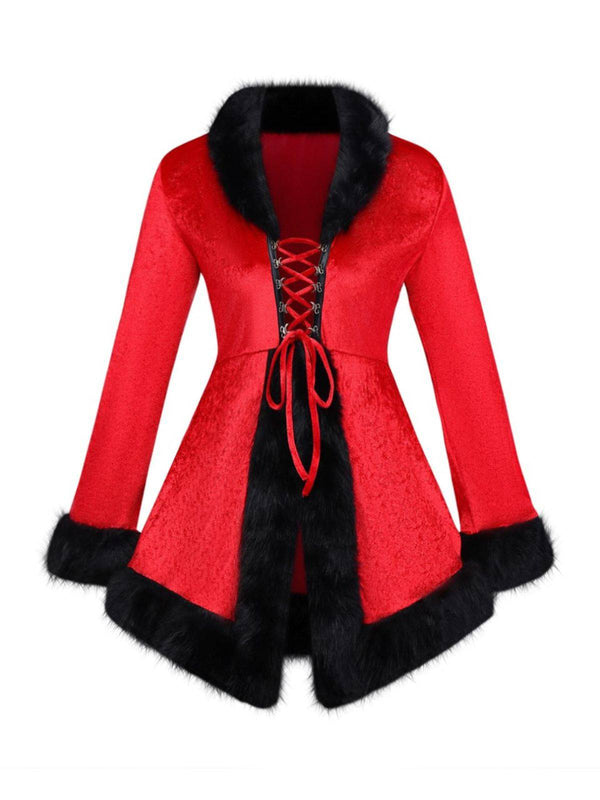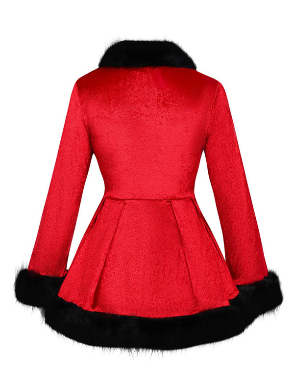 Abito in velluto e finiture in pelliccia natalizia rosso anni '70
