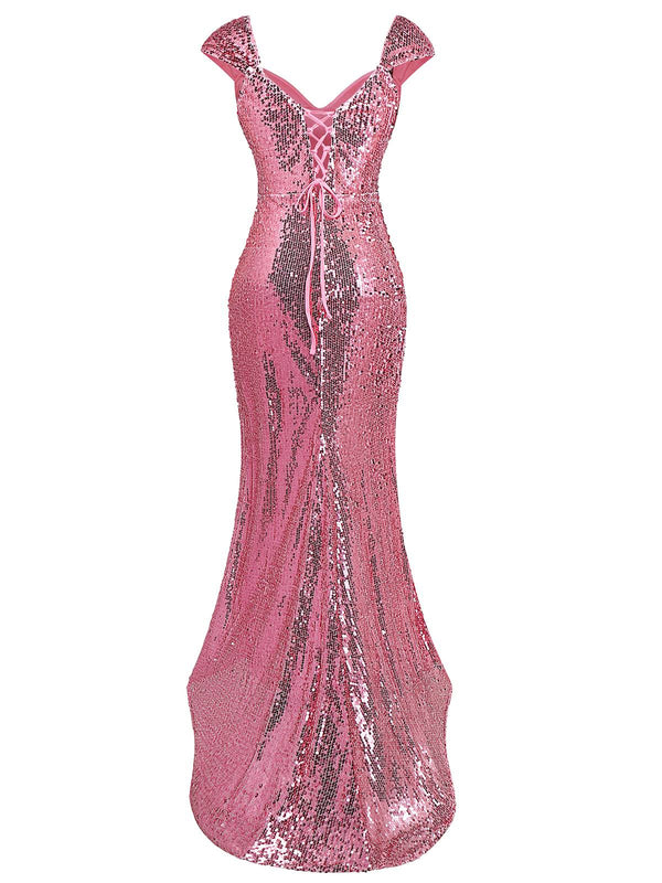 Abito lungo con spacco alto in paillettes rosa anni '20