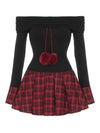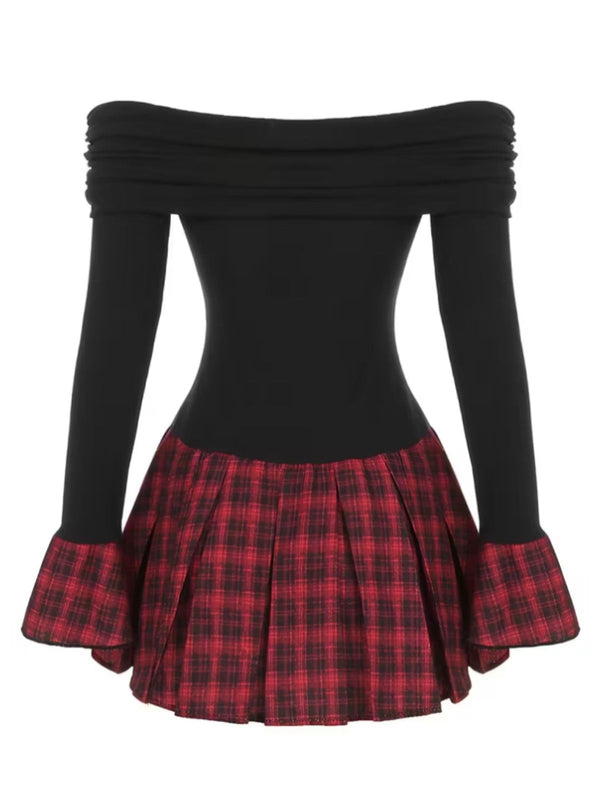 Abito plissettato a quadri con spalle scoperte nero anni '60