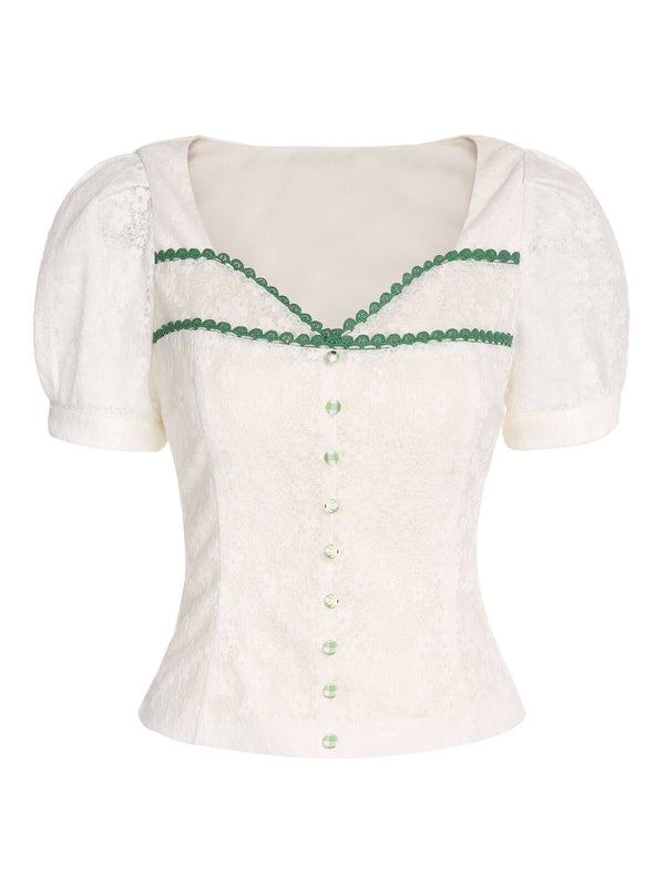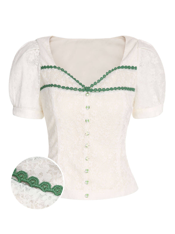 Camicetta in pizzo con maniche a sbuffo beige anni '50 – Retro-Stage.it