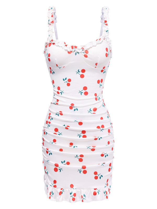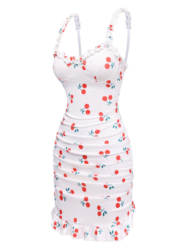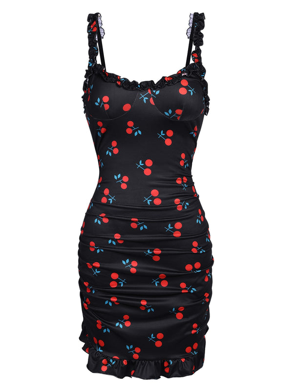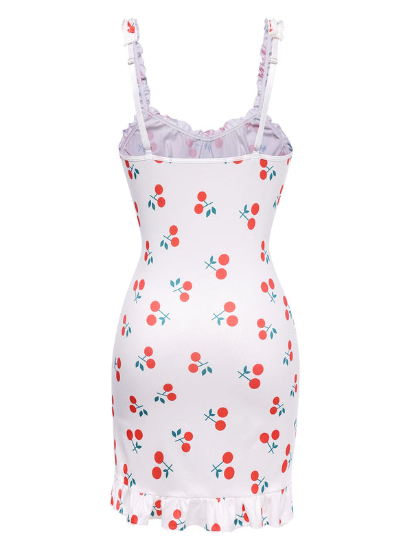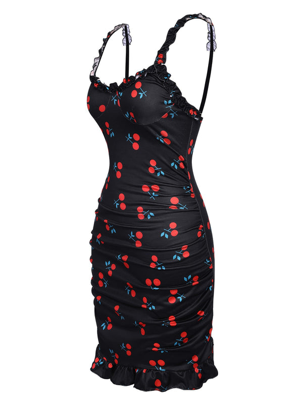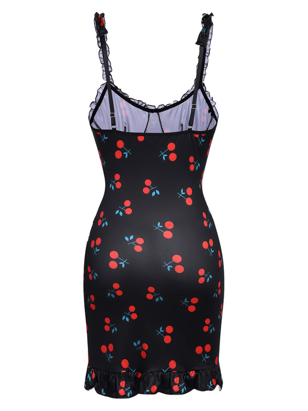 Camicia da notte ciliegia con spalline e orlo arricciato anni '60 – Retro-Stage.it