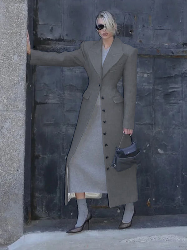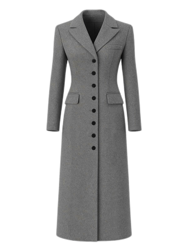Cappotto in lana con bottoni e revers a tinta unita grigio anni '30