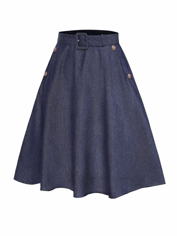 Gonna con bottoni e cintura blu anni '40 – Retro-Stage.it