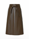 Gonna midi a vita alta in pelle marrone anni '80