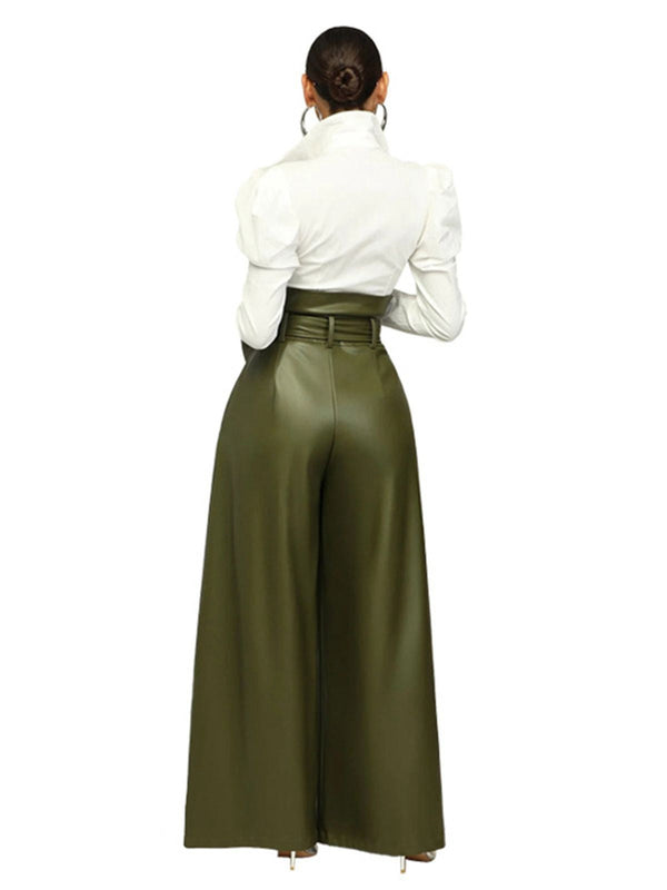 Pantaloni a gamba larga in pelle PU con cintura anni '80