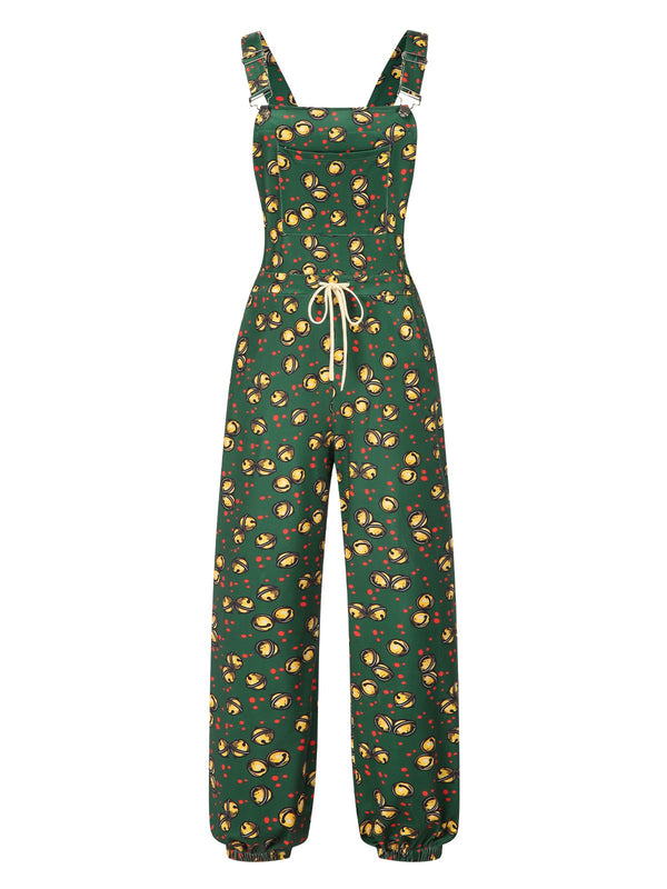 Tuta lunga multitasche con campanelle Natale verde scuro anni '30
