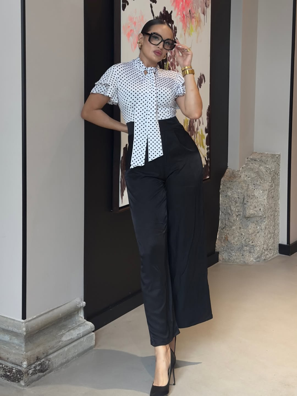 Tuta lunga nera nodo al collo a pois anni '30 – Retro-Stage.it