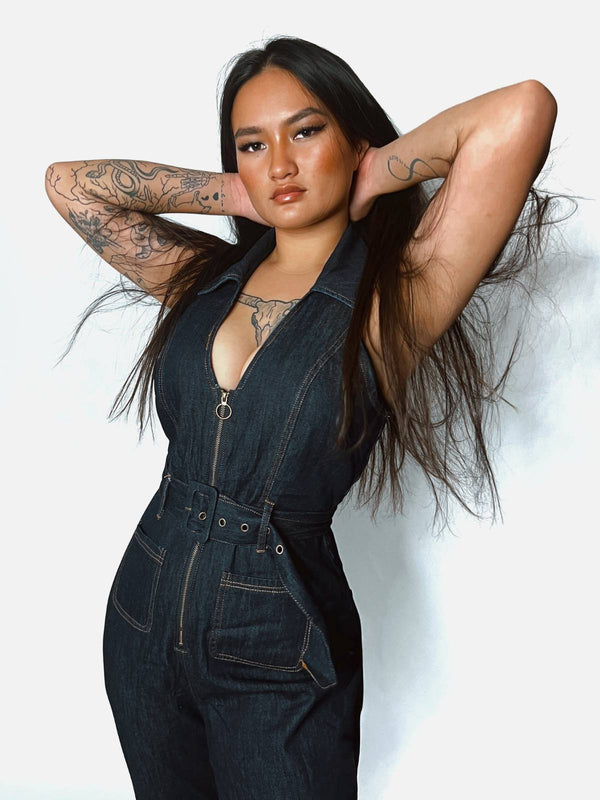 [Prevendita] Tuta lunga svasata in denim cotone blu anni '70